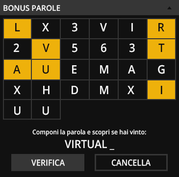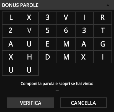 Une fois le mot-clé complété, il suffit de sélectionner les lettres individuelles qui composent les mots et de cliquer pour vérifier le résultat et éventuellement recueillir le prix.